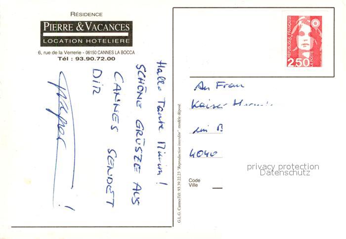 13242918 carte postale La Bocca Residence Pierre und Vacances postalisch gelaufen Erhaltung siehe scans [KathaD81] KatCode: 11170006106029