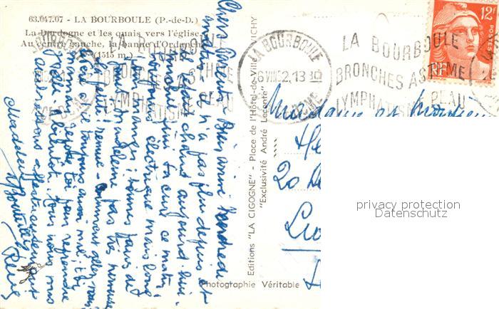 13535523 carte postale La Bourboule La Dordogne et les quais vers l’Eglise postalisch gelaufen Erhaltung siehe scans [FriedD77] KatCode: 11170063263047