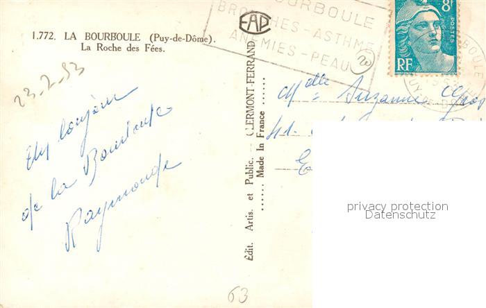 13530681 carte postale La Bourboule La Roche des F?es postalisch gelaufen Erhaltung siehe scans [LiesaD40] KatCode: 11170063263047