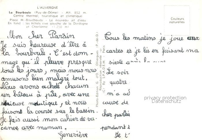 13579075 La Bourboule Place M. Bouchaudy Jet d eau Hôtels postalisch nicht gelaufen Erhaltung siehe scans [FriedD77] KatCode: 11170063263047