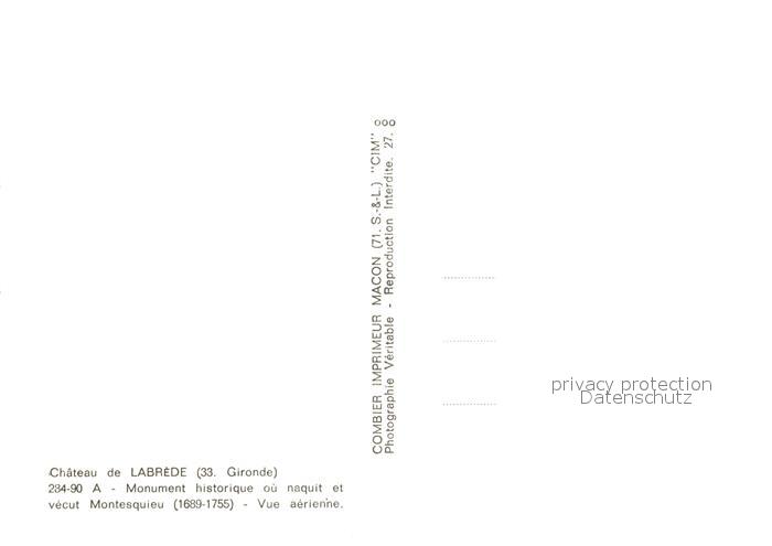 13294901 La Brede Chateau de Labrede Fliegeraufnahme postalisch nicht gelaufen Erhaltung siehe scans [NatalD47] KatCode: 11170033233213