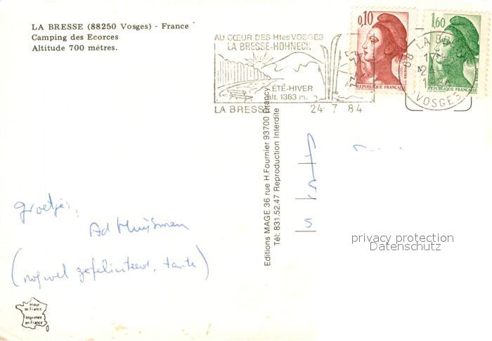 13359950 carte postale La Bresse Camping des Ecorces en été et en hiver postalisch gelaufen Erhaltung siehe scans [FriedD77] KatCode: 11170088188075