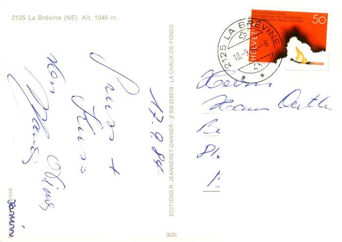 13902008 alte Postkarte La Brevine NE Fliegeraufnahme postalisch gelaufen Erhaltung siehe scans [FriedD77] KatCode: 11470130415114