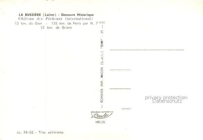 13640340 La Bussiere Loiret Chateau des Pêcheurs Demeure Historique vue aérienne postalisch nicht gelaufen Erhaltung siehe scans [FriedD77] Frie Katcode 11170045145060
