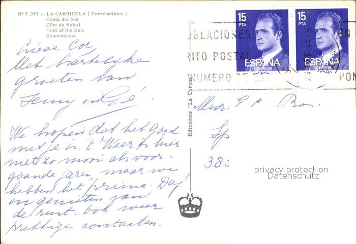 old postcard La Carihuela Sonnenkueste Strand Fliegeraufnahme postalisch gelaufen Erhaltung siehe scans