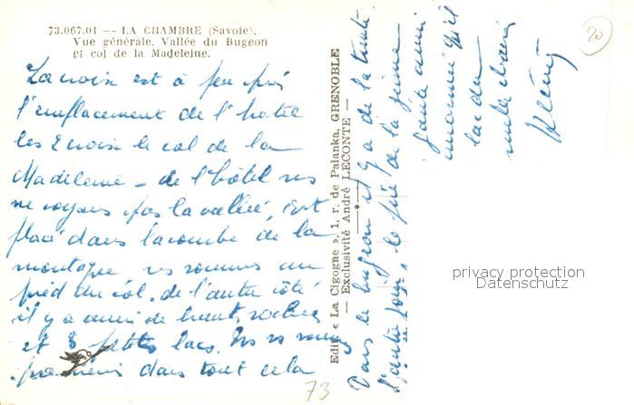 13486827 La Chambre Vue panoramique Vallee du Bugeon Col de la Madeleine Alpes Francaises postalisch nicht gelaufen Erhaltung siehe scans [FriedD77] KatCode: 11170073373067