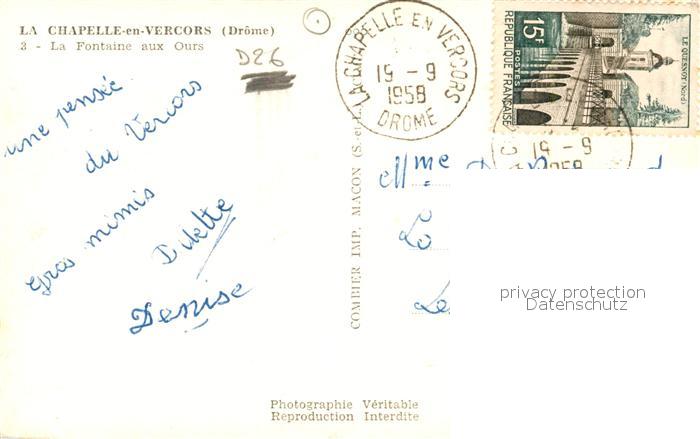 13553245 carte postale La Chapelle-en-Vercors La Fontaine aux Ours postalisch gelaufen Erhaltung siehe scans [FriedD77] KatCode: 11170026126074