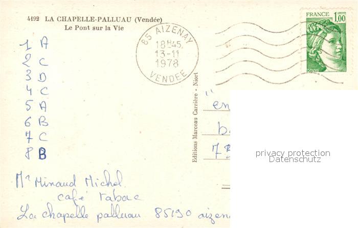 13508053 carte postale La Chapelle-Palluau Le Pont sur la Vie postalisch gelaufen Erhaltung siehe scans [WerneD78] KatCode: 11170085385055