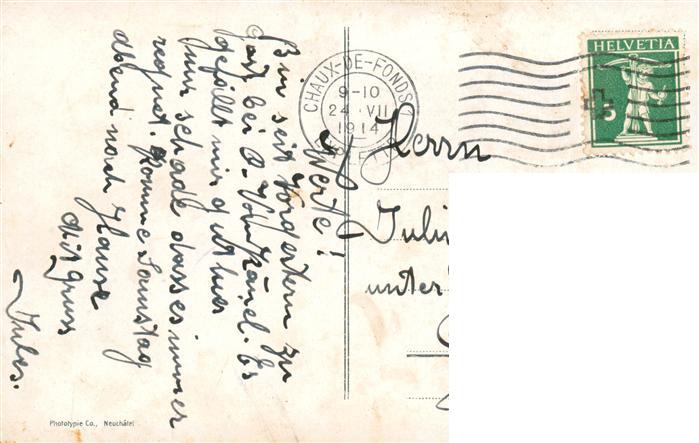 13908148 alte Postkarte La Chaux-de-Fonds NE Fontaine Monumentale Avenue Léopold Robert postalisch gelaufen Erhaltung siehe scans [FriedD77] KatCode: 11470130410098