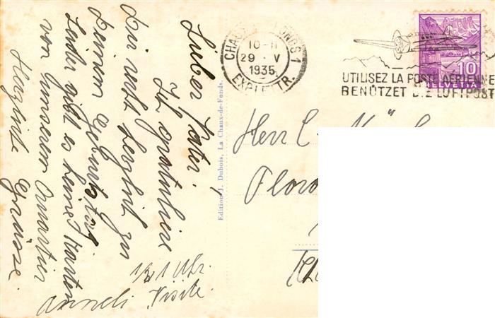 13916091 alte Postkarte La Chaux-de-Fonds NE Vue generale aerienne postalisch gelaufen Erhaltung siehe scans [FriedD77] KatCode: 11470130410098