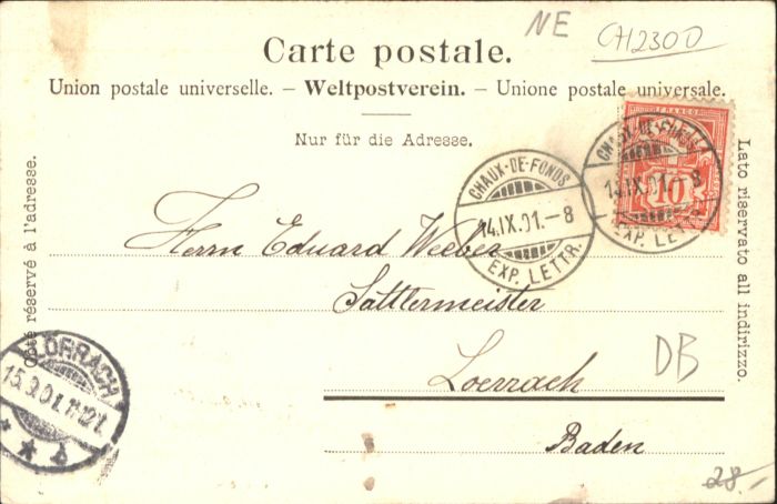 10890715 alte Postkarte La Chaux-de-Fonds Strassenbahn postalisch gelaufen KatCode: 11470130410098