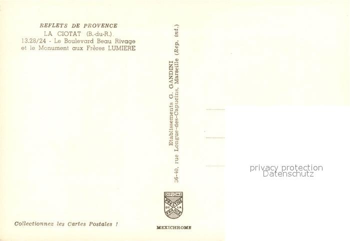 13356744 La Ciotat Le Boulevard Beau Rivage et le Monument aux Freres Lumiere postalisch nicht gelaufen Erhaltung siehe scans [WerneD78] KatCode: 11170013313028
