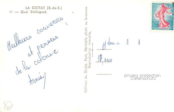 13515424 carte postale La Ciotat Quai Stalingrad postalisch gelaufen Erhaltung siehe scans [KathaD81] KatCode: 11170013313028