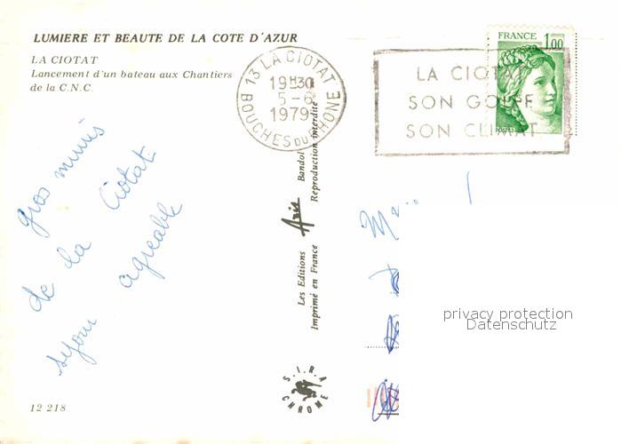 12878486 carte postale La Ciotat Schiffereiwerft postalisch gelaufen Erhaltung siehe scans [AndreD76] KatCode: 11170013313028