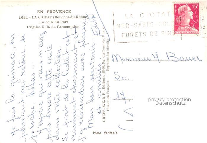 13516260 carte postale La Ciotat Un coin du Port Eglise ND de l’Assomption postalisch gelaufen Erhaltung siehe scans [WerneD78] KatCode: 11170013313028