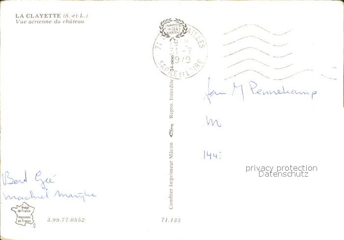 12330633 carte postale La Clayette Chateau vue aerienne Schloss Fliegeraufnahme postalisch gelaufen Erhaltung siehe scans KatCode: 11170071371133