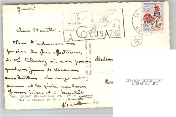 13489459 carte postale La Clusaz Chapelle du Gotty Alpes en hiver postalisch gelaufen Erhaltung siehe scans [FriedD77] KatCode: 11170074174080