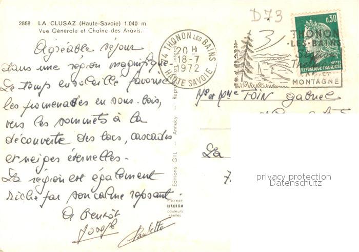 13640217 La Clusaz Vue Generale et Chaîne des Aravis Alpes postalisch gelaufen Erhaltung siehe scans [FriedD77] carte postale Frie Katcode 11170074174080