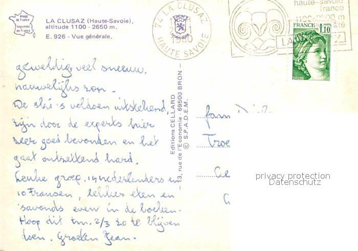 12863655 carte postale La Clusaz Vue generale Sports d hiver Wintersportplatz Alpen postalisch gelaufen Erhaltung siehe scans [FriedD77] KatCode: 11170074174080