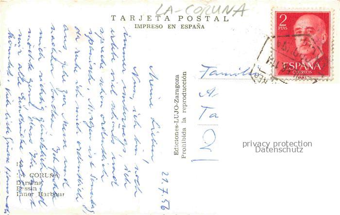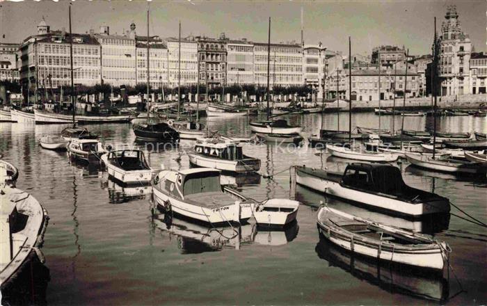 74121202 old postcard LA CORUNA A Coruna ES Inner Harbour postalisch gelaufen Erhaltung siehe scans [WerneD78] KatCode: 11510