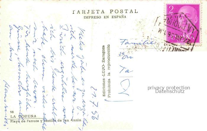 74121197 old postcard LA CORUNA A Coruna ES Playa de Parrote y castillo de San Anton postalisch gelaufen Erhaltung siehe scans [WerneD78] KatCode: 11510