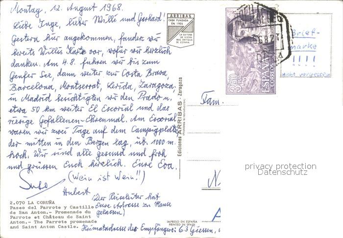 old postcard La Coruna Promenade Saint Anton Castle postalisch gelaufen Erhaltung siehe scans