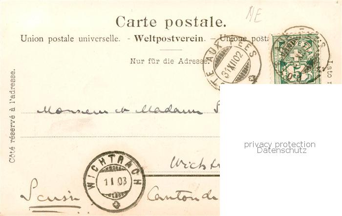 13821088 alte Postkarte La Cote-aux-Fees Eglise Kirche postalisch gelaufen Erhaltung siehe scans [FriedD77] KatCode: 11470130430226