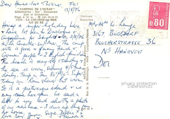 13357212 carte postale La Couarde-sur-Mer Camping de l’Océan vue aérienne postalisch gelaufen Erhaltung siehe scans [FriedD77] KatCode: 11170017317121