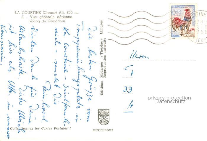 13834947 La Courtine 23 Vue generale aerienne l’etang de Gratadour postalisch gelaufen Erhaltung siehe scans [FriedD77] carte postale Frie Katcode 11170023123067