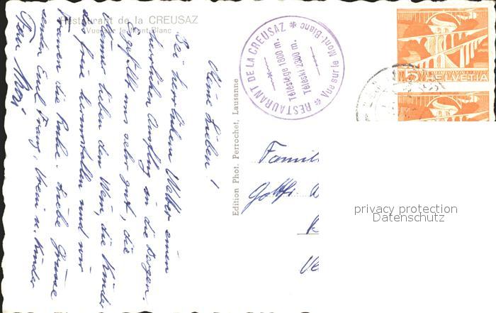 12344743 alte Postkarte La Creusaz Restaurant et la Chaine du Mont Blanc postalisch gelaufen Erhaltung siehe scans KatCode: 11470230735594
