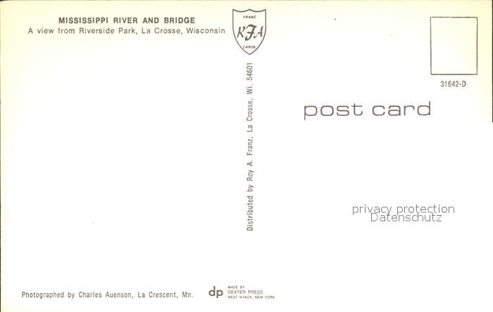 72316474 La Crosse Wisconsin Mississippi River and Bridge postalisch nicht gelaufen Erhaltung siehe scans KatCode: 14140520000000