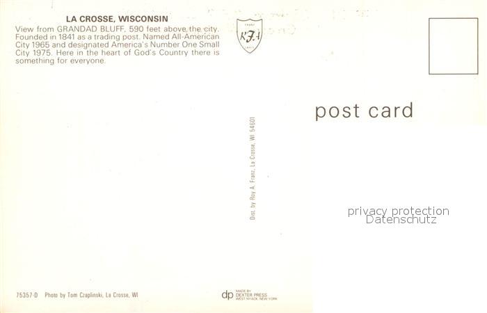 72938576 La Crosse Wisconsin View from Grandad Bluff postalisch nicht gelaufen Erhaltung siehe scans [PaolaD17] KatCode: 14140520000000