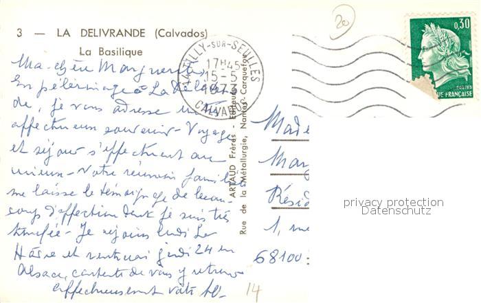 13494421 carte postale La Delivrande Basilique postalisch gelaufen Erhaltung siehe scans [FriedD77] KatCode: 11170014214228