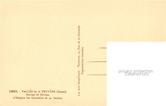 13477813 La Deveze Barrage de Sarrans Hospice des incurables Vallee de la Truyere postalisch nicht gelaufen Erhaltung siehe scans [FriedD77] KatCode: 11170015315149