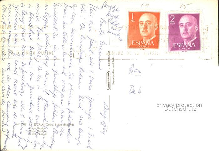 old postcard La Escala Costa Brava Playa Montgo postalisch gelaufen Erhaltung siehe scans