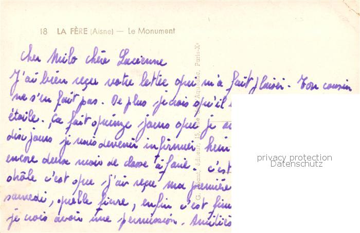13788805 La Fere 02 Aisne Le Monument postalisch nicht gelaufen Erhaltung siehe scans [LiesaD40] Lies Katcode 11170002202304