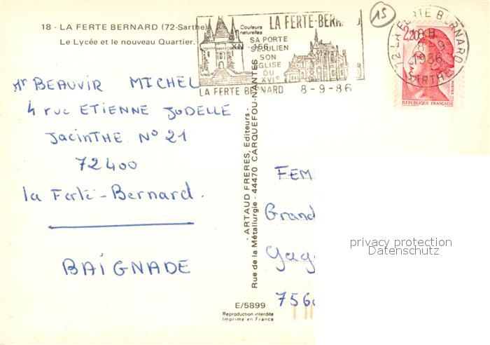 13146767 carte postale La Ferte-Bernard Le Lycee et nouveau Quartier postalisch gelaufen Erhaltung siehe scans [LiesaD40] KatCode: 11170072272132