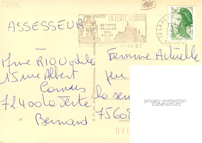 13163085 carte postale La Ferte-Bernard Le Mail vers Notre Dame des Marais postalisch gelaufen Erhaltung siehe scans [WerneD78] KatCode: 11170072272132