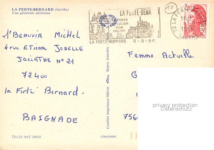 13162396 carte postale La Ferte-Bernard Vue aérienne postalisch gelaufen Erhaltung siehe scans [FriedD77] KatCode: 11170072272132
