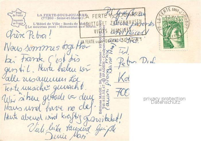 13742582 La Ferte-sous-Jouarre 77 Hotel de Ville Bords de Mairie Le nouveau pont Monument aux Morts postalisch gelaufen Erhaltung siehe scans [FriedD77] carte postale Frie Katcode 11170077177183