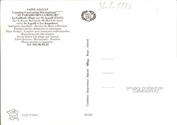 12312602 La Gaillarde Camping caravaning international Au Paradis des Campeurs Vue aerienne postalisch nicht gelaufen Erhaltung siehe scans KatCode: 11170076176294