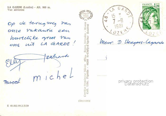 12662303 carte postale La Garde Lozere Vue aerienne postalisch gelaufen Erhaltung siehe scans [FriedD77] KatCode: 11170048248119