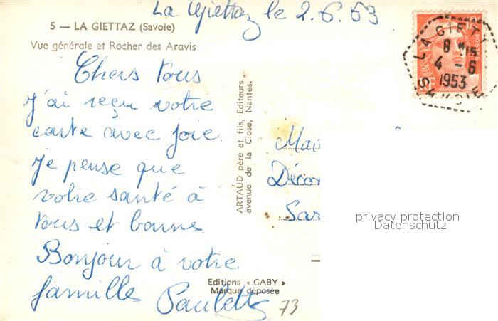 13554890 carte postale La Giettaz Vue generale et Rocher des Aravis postalisch gelaufen Erhaltung siehe scans [WerneD78] KatCode: 11170073173123