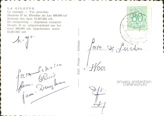 72269434 carte postale La Gileppe Fliegeraufnahme Barrage postalisch gelaufen Erhaltung siehe scans KatCode: 11070063000157