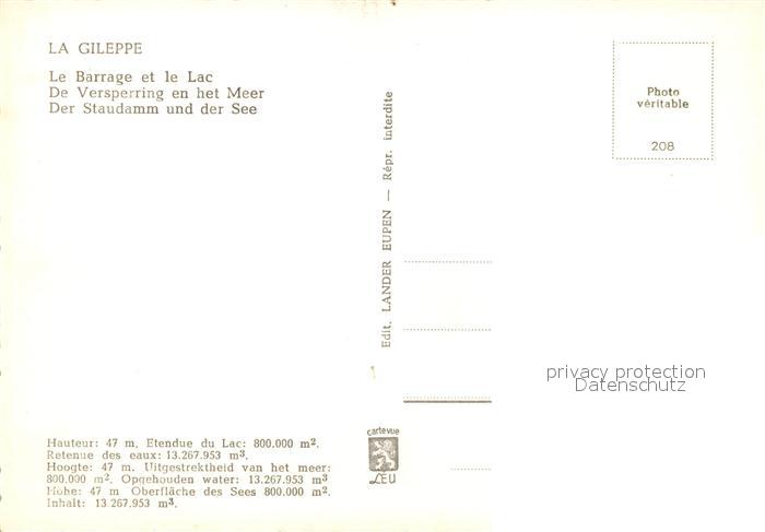 73118803 La Gileppe Staudamm und See postalisch nicht gelaufen Erhaltung siehe scans [LiesaD40] KatCode: 11070063000157