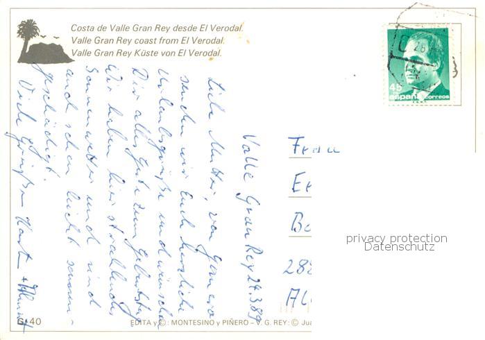 old postcard La Gomera Kuestenpanorama El Verodal Valle Gran Rey postalisch gelaufen Erhaltung siehe scans [FriedD77]