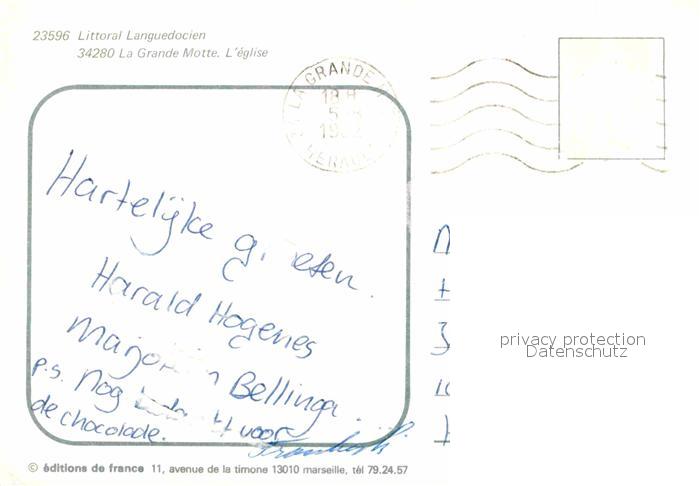 12663525 carte postale La Grande-Motte Eglise Kirche postalisch gelaufen Erhaltung siehe scans [FriedD77] KatCode: 11170034334344