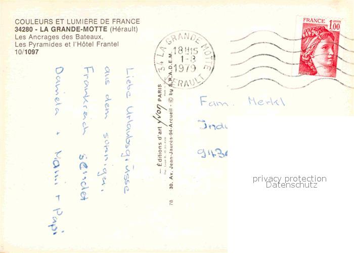 12840498 carte postale La Grande-Motte Les Ancrages des Bateaux Pyramides Hotel Frantel Collection Couleurs et Lumiere de France postalisch gelaufen Erhaltung siehe scans [FriedD77] KatCode: 11170034334344