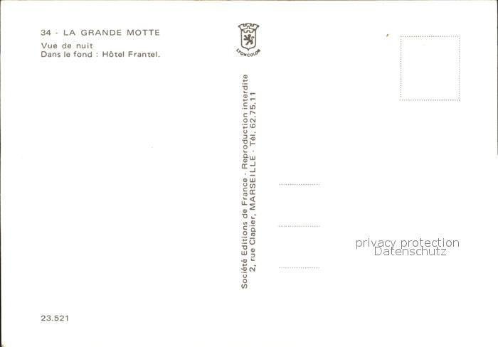 12254798 La Grande-Motte Vue de nuit Hotel Frantel postalisch nicht gelaufen Erhaltung siehe scans KatCode: 11170034334344