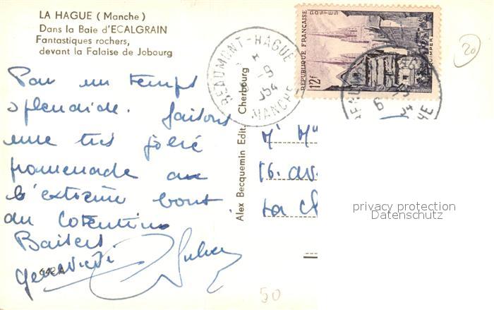 13506741 carte postale La Hague Vauville Baie d Ecalgrain Rochers devant la Falaise de Jobourg postalisch gelaufen Erhaltung siehe scans [FriedD77] KatCode: 11170050250623
